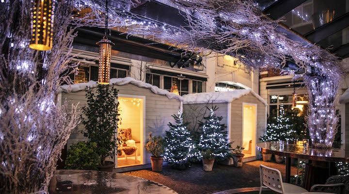 If you’re in a group (of 6 or less) and fancy more festive party vibes head to one of the many xmas wonderland that are popping up, like Winterland aka Neverland or Fulham beach as it’s known in the summer. The whole place has had an alpine, ski-lodge makeover and staff are wearing lederhosen and dirndls to serve mulled wine and fondue.