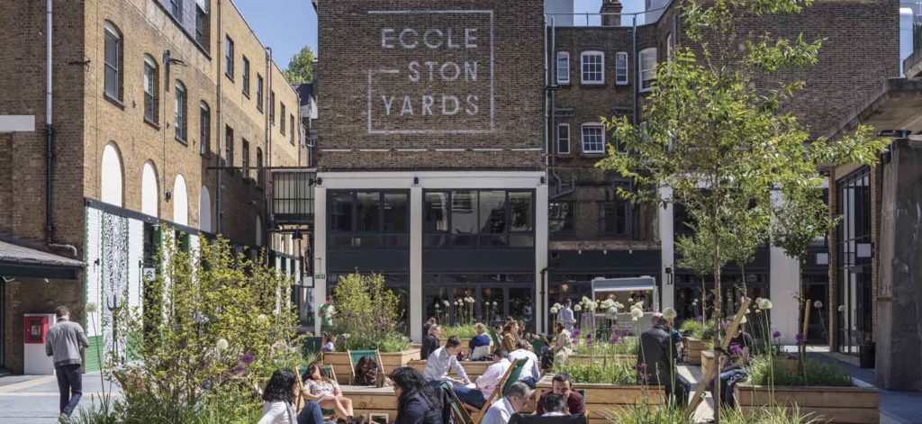 Eccleston Yard just by Victoria Station is the cutest factory courtyard area surrounded by small individual bars and restaurants. The atmosphere is cosy, cute and romantic.