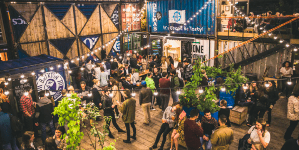 Pop Brixton the crate village is awash with glitter and shimmer to drink in with your tacos and craft beer. And while we’re talking crates don’t forget Box Park and student hang out Queen of Hoxton in Shoreditch.
