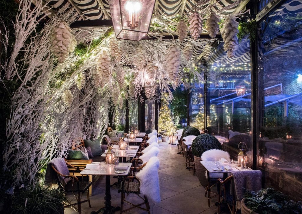 The Kings Road boasts two very insta festive outdoor eateries, namely The Ivy Chelsea Garden with incredible installations on the facade and the back garden. And Bluebird also has a gorgeous winter (and summer) pop area with heaters and fur skin throws.