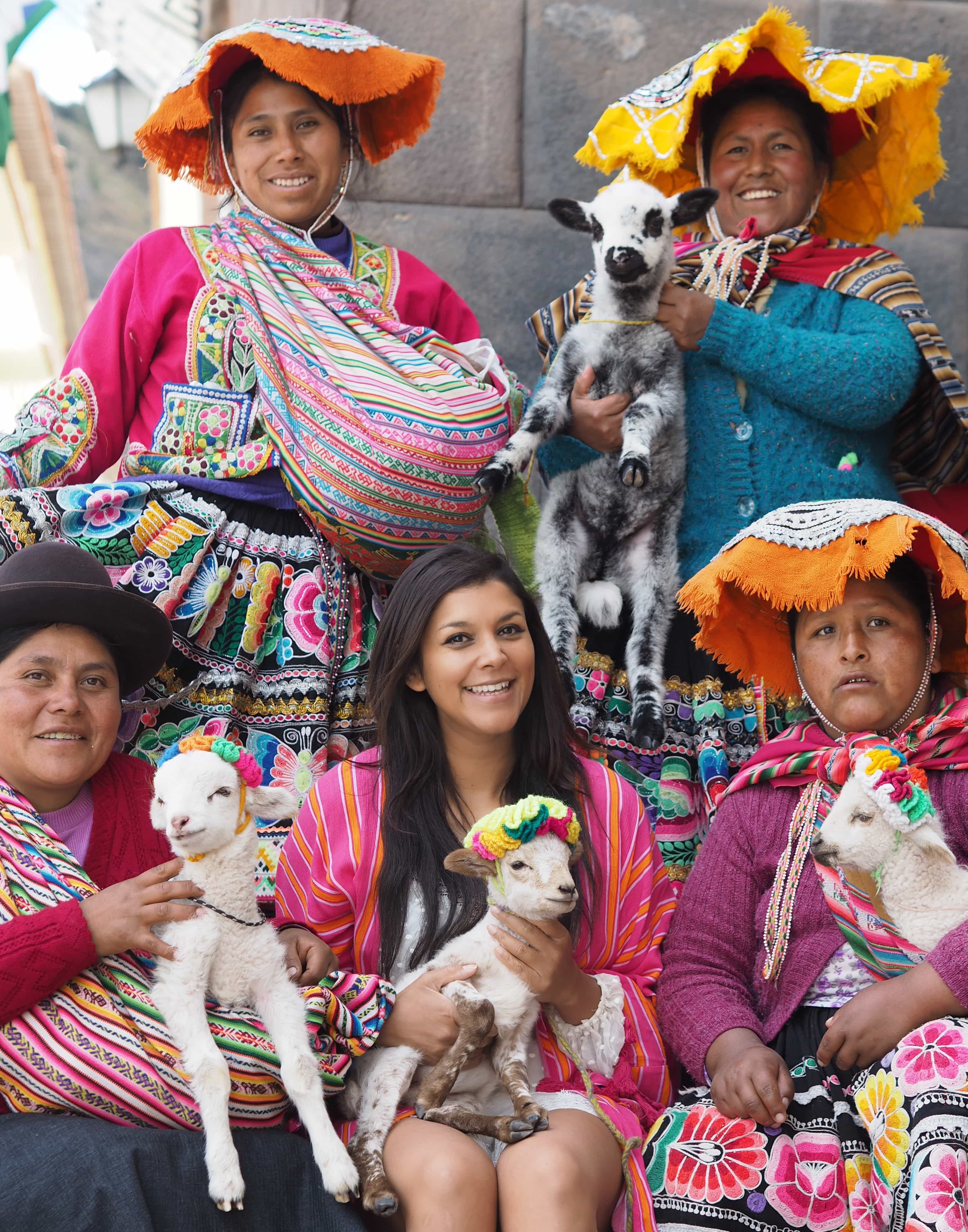 Belmond Monasterio best luxury hotels in Cusco Bonnie Rakhit Ladies in traditional Peruvian costume with lambs