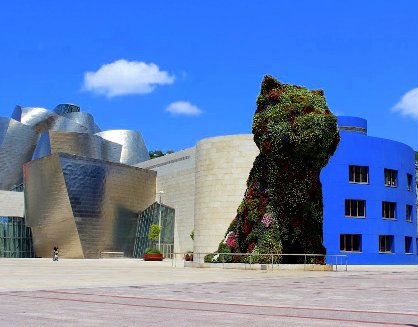 bilbao guggenheimThe famous Jeff Koons ‘Puppy‘ outside the entrance to the Guggenheim Bilbao