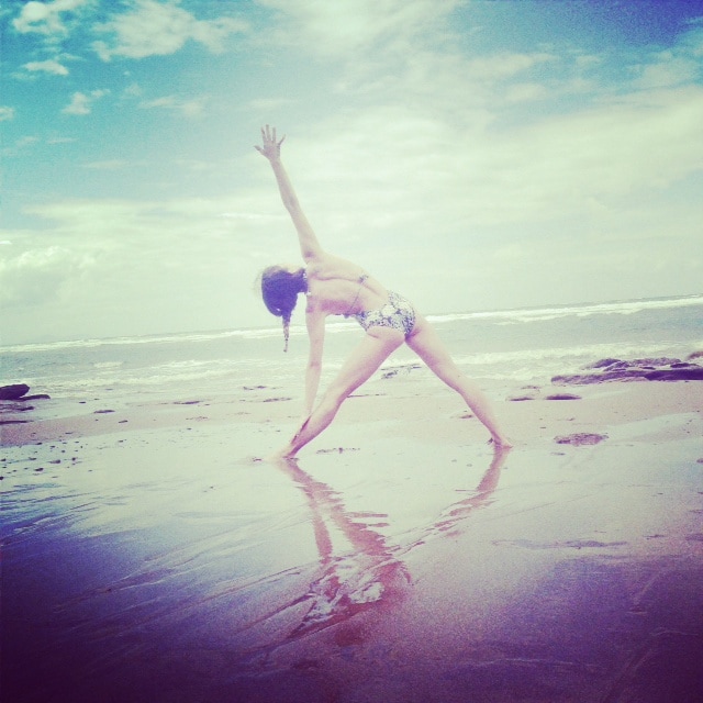 Kat Webster yoga teacherNope, this isn’t me unfortunately! It’s the gorgeous Kat Webster practicing her triangle pose on the beach. Image taken from her beautiful tumblr site Life Es Bella
