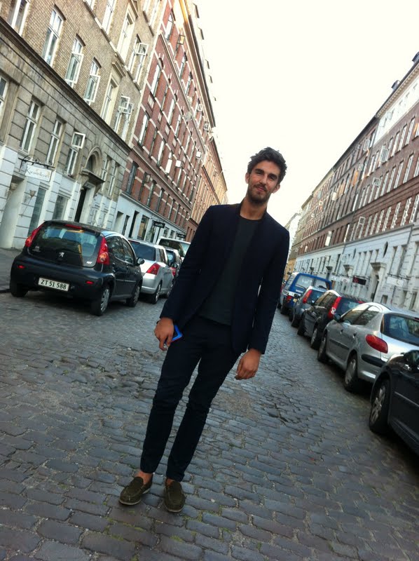 | Theo in black suit and loafers, very smart! |