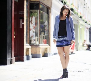 | Hayley wears a cobalt blue French Connection blazer in Norrebro |