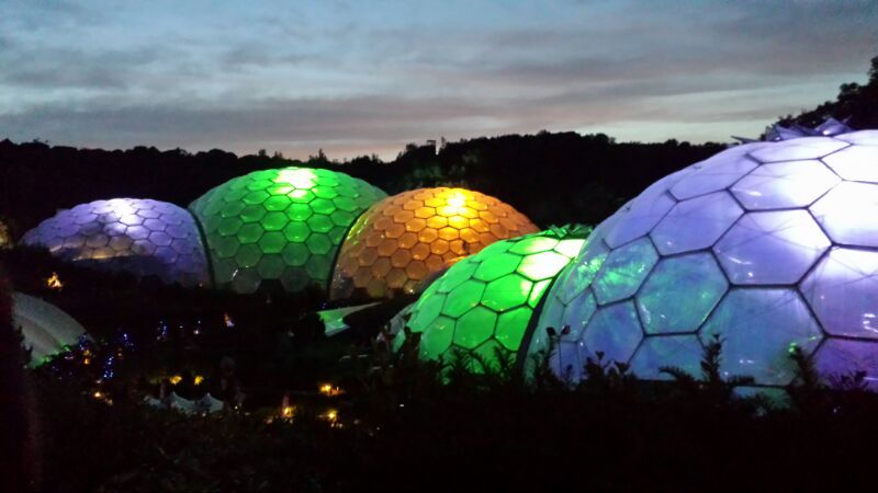 The amazing Bio-domes at The Eden Project lit up at night