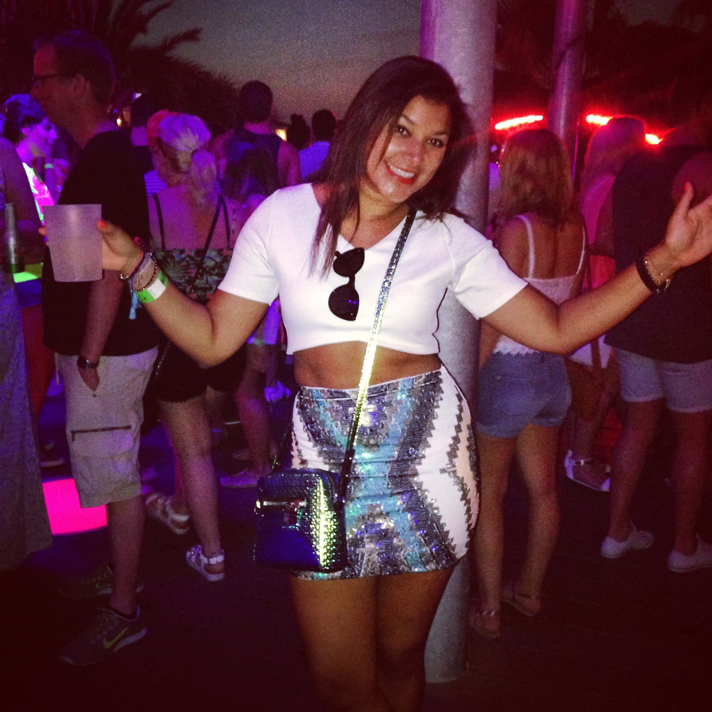 What to wear when you’re there? As little as possible (in case you end up in the pool!) Keep it fun, colourful and clubby. I’m obsessed to sparkles and neon so guess what I opted for…