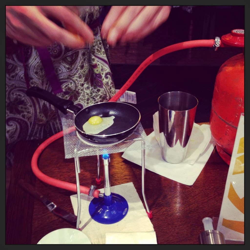 | Breakfast is served over bunsen burners! |