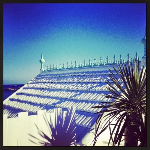Above Akiko Wears: Captains hat – Stella McCartney Kids, Navy swimsuit – American Apparel, High waisted shorts – Vintage Stella McCartney, White Grace heels – KG Kurt Geiger.