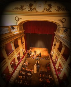 After a leisurely few days lounging, sunbathing and eating as much delicious local Italian food as possible, the big day arrived. We all enjoyed a lazy Saturday morning breakfast followed by a dip in the pool, got ready (see what to wear to a summer wedding) and then made our way through the old town to the wedding venue. Accompanied by a string quartet, in the baroque surroundings of the town theatre, the ceremony was utterly romantic.