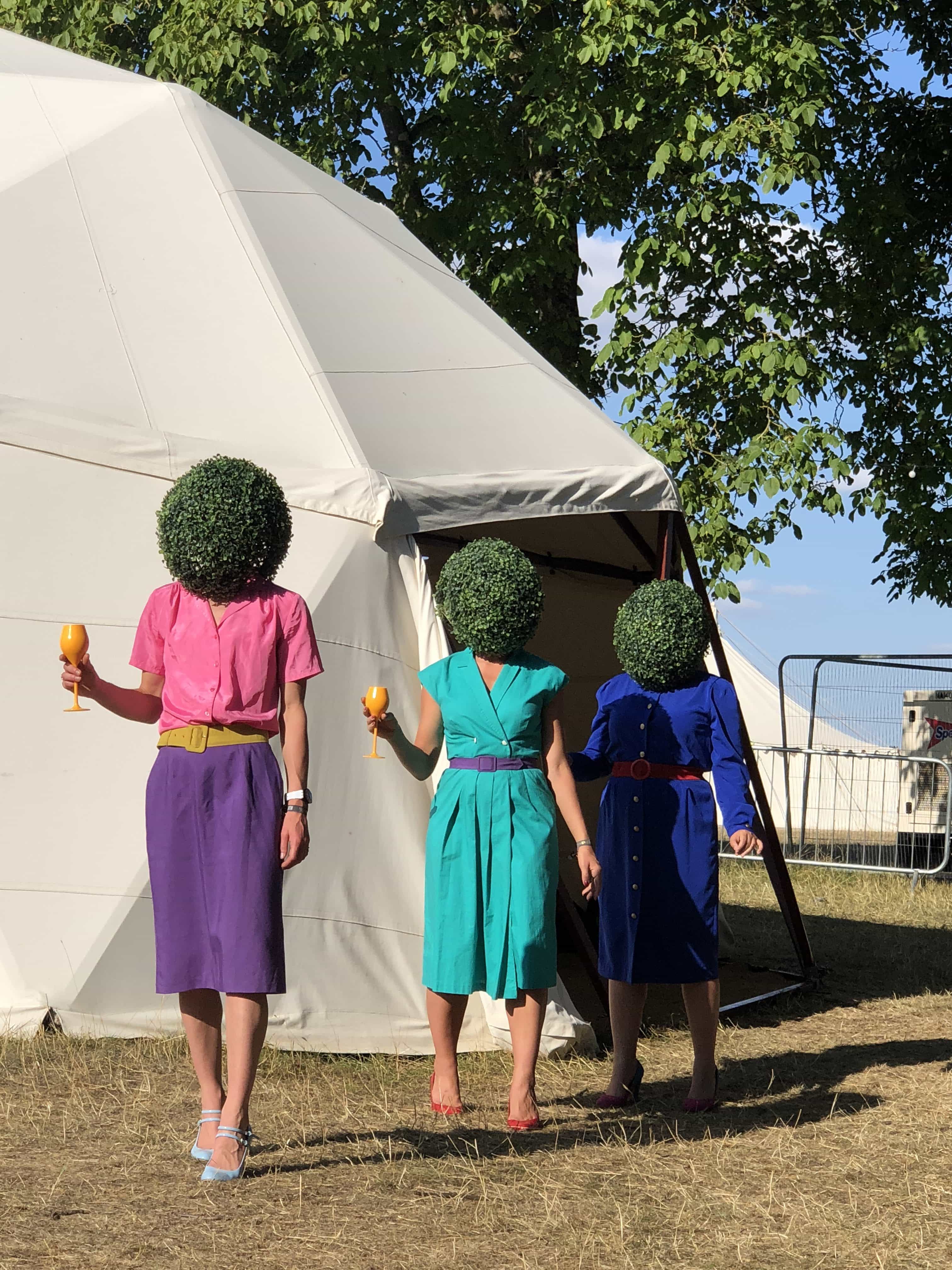 Veuve clicquot hedge head ladies at Wilderness Festival topiary gardening Veuve clicquot hedge head ladies at Wilderness Festival topiary gardening
