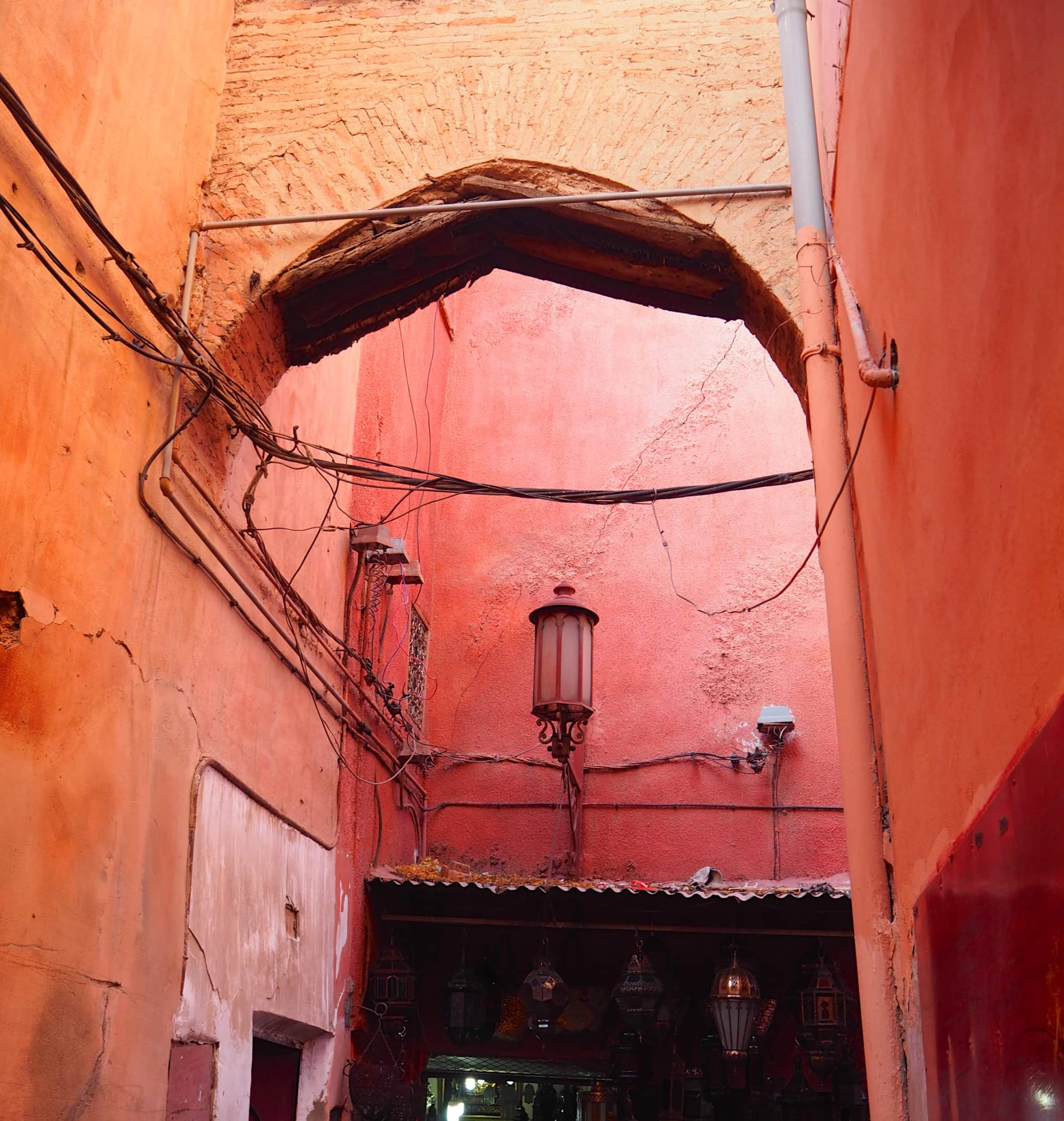 Above and below: Scenes from within the ancient medina in Marrakech, exquisite rose and ochre hues prevail in the winding, haunting streets.