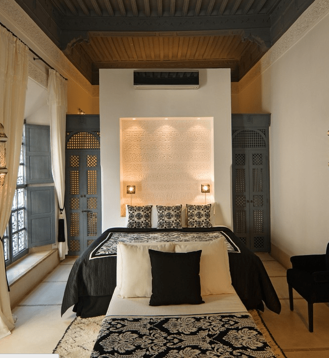 Above and below: Elegantly chic bedrooms at Riad Adore