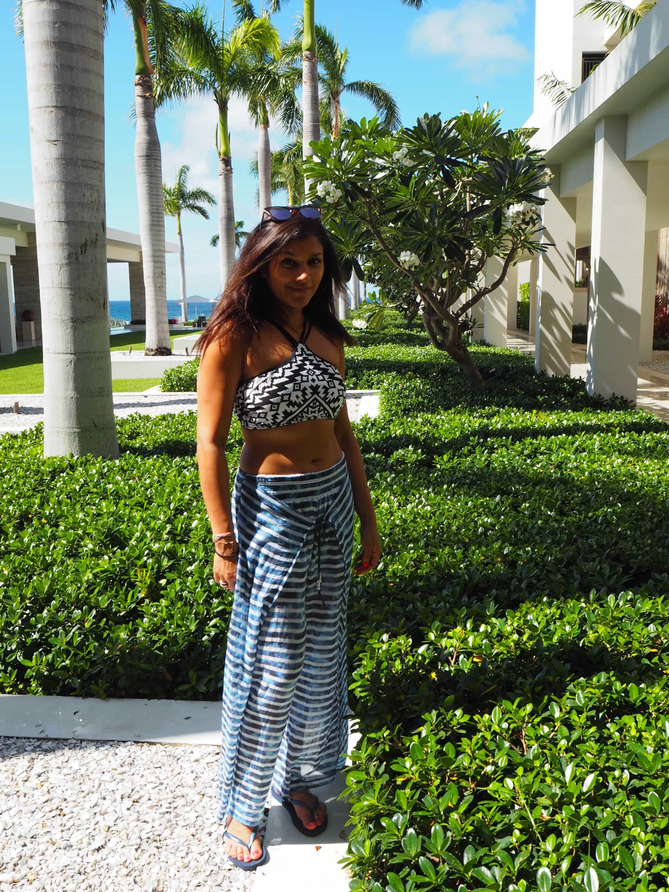 The Style Traveller Bonnie Rakhit Viceroy AnguillaMe wearing Kasbah Bikini top and Hydro beach trousers both by Seafolly at Coco Bay in the main garden area. Style Traveller Tip: Book in for a relaxing signature massage at the rejuvenating spa on arrival, it’s the best way to start the trip and get into the Caribbean vibe.