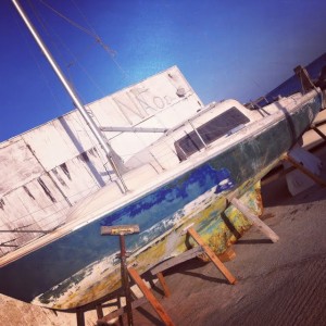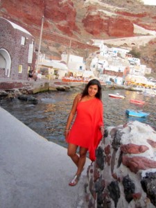 Formed from volcanic ash and rocks, yes you guessed it…the sand is black! Black Beach spans a large section of the south-east coast of the island. I stumbled across a great place for cocktails, the Black Rose Suites in Perivolos. It faces onto the beach, but behind it huge imposing hills make for a very surreal setting. I highly recommend the frozen margaritas!!