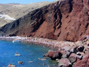 Is a small cove beach south-west of the island. It gets very busy in high summer and the walk to the beach is a mini trek over some rocky terrain. An easier way to get to it is on the boat cruises that take you to all the beaches. It’s a nice enough beach but don’t be too upset is you don’t have time for it in your schedule. It is near the ancient archaeological site of Akrotiri.