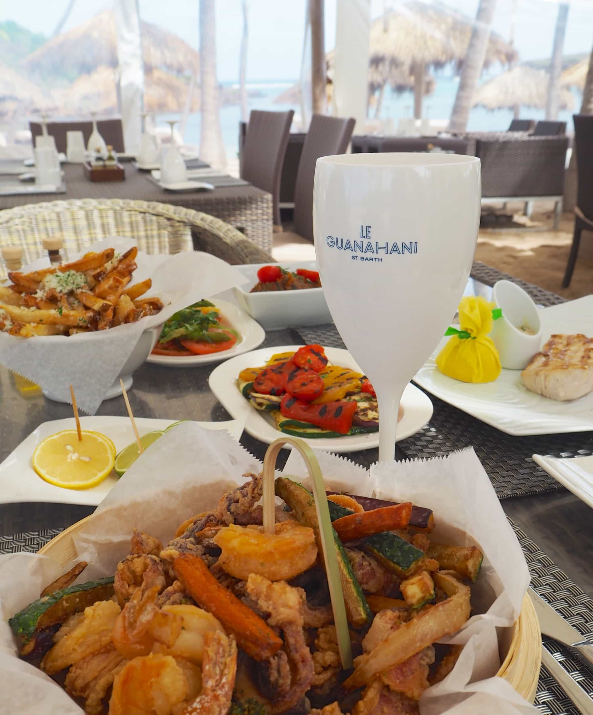 The food on offer at Le Guanahani is a gastronomic delight. Chill out in the bare foot, relaxed vibe at Indigo by the Pool, enjoying impressive, sea views and excellent seafood (above).