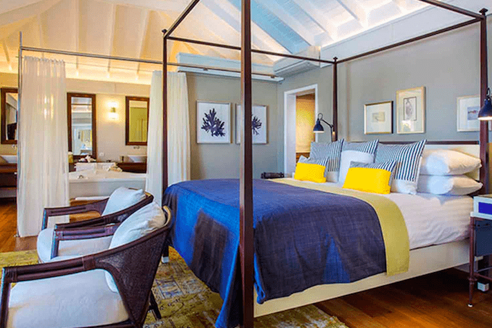 I stayed in the very special Admiral Suite (pictured) with two bedrooms featuring 4-poster-beds, leading onto a spacious and light living area. Surrounded by its own large decking area, the room has private access to the beach and panoramic views of the island. And as if that wasn’t enough….