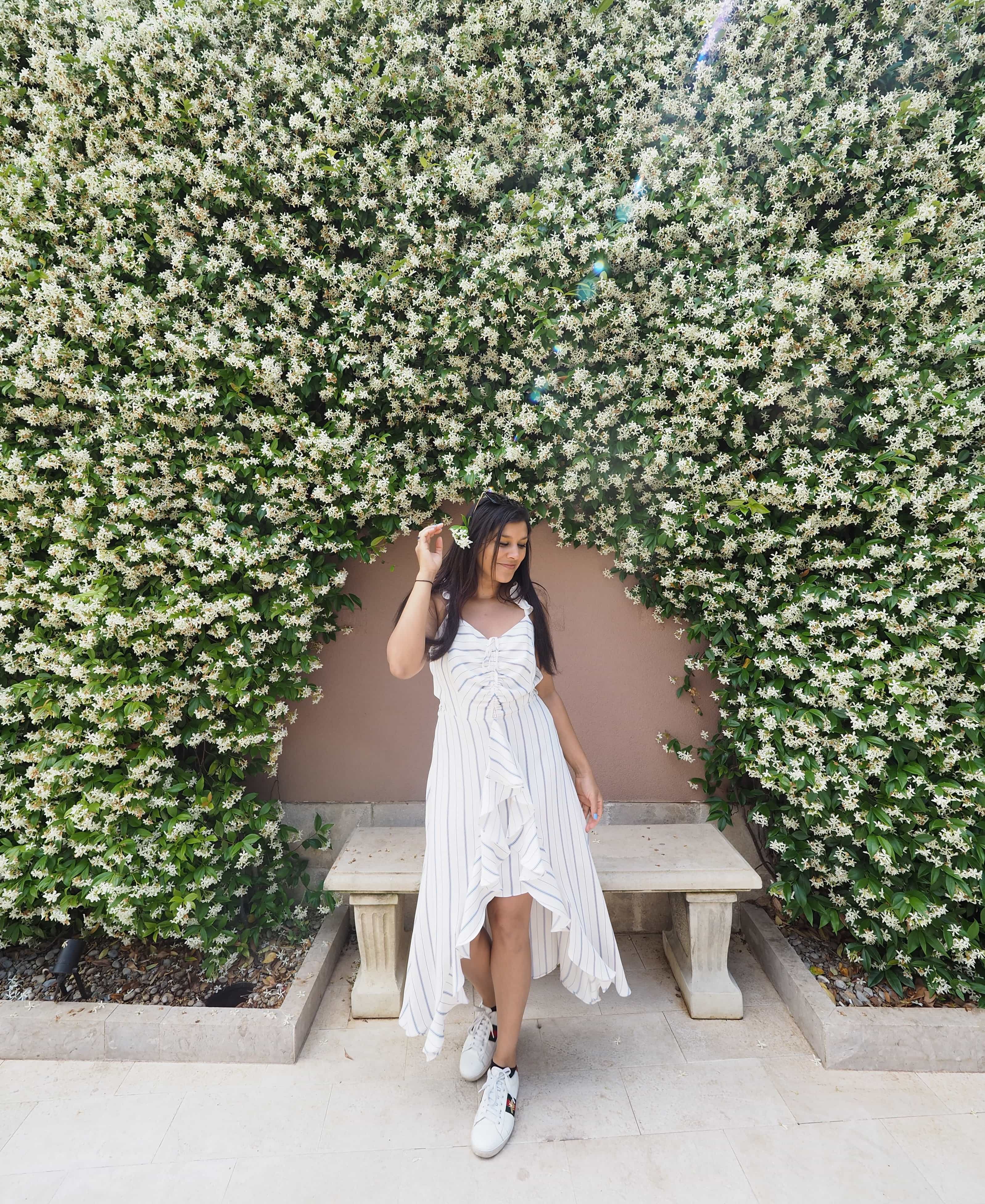 Bonnie Rakhit Style Traveller at Regent porto Montenegro flower walls