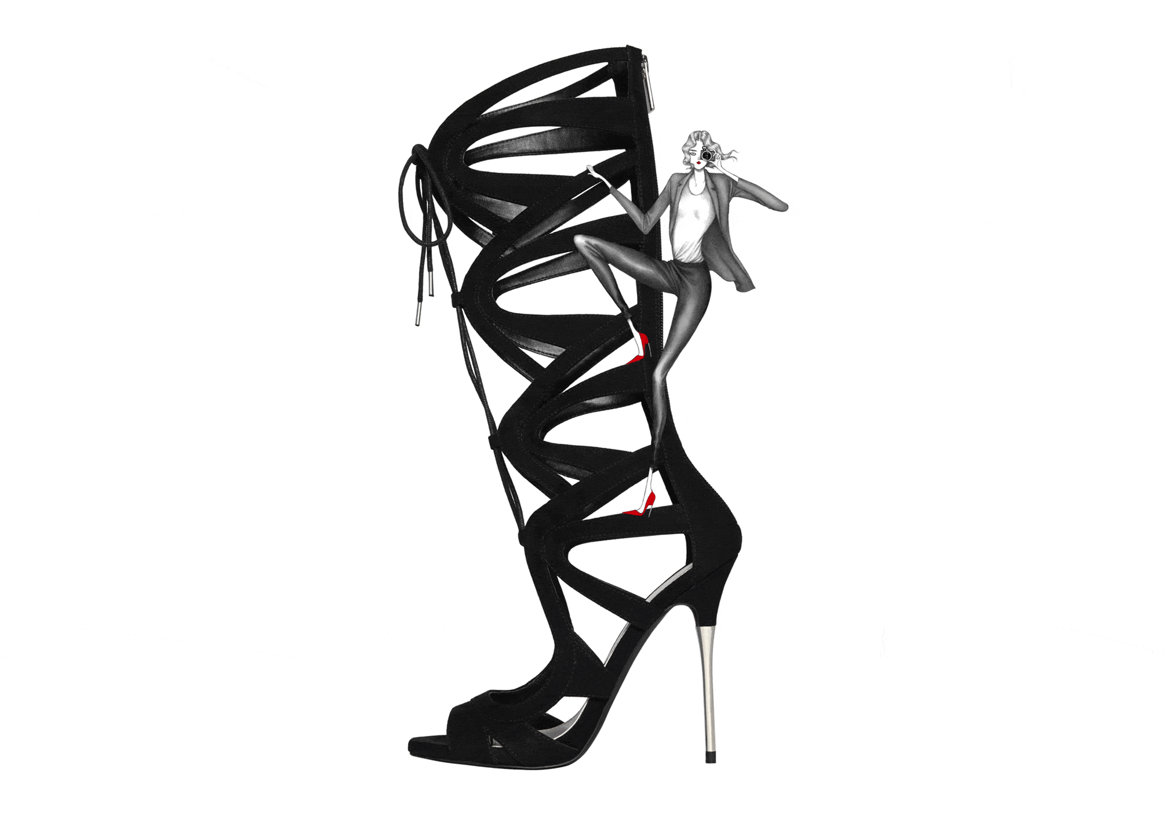 This week also sees the new ‘Gylda’ gladiator, lace-up sandal hit the stores. Seen here in a quirky illustration drawn by Laura Laine. It features Scarlett, the anonymous fashionista behind the Kurt Geiger blog Everything but the Dress, who has an obvious accessories obsession. And to be honest who could blame her! The Gylda is available online at KurtGeiger.com