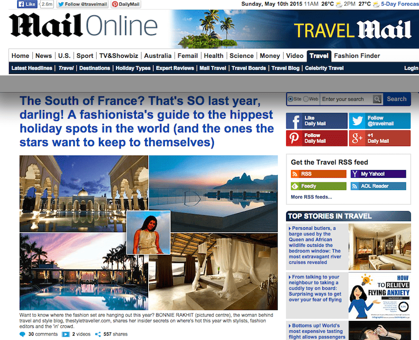 Love your style, design and of course your shoes and handbags, as much as me? Looking for a chic spot for your summer holiday? Don’t book anything, until you’ve read TheStyleTraveller.com Top 5 Fashionista Getaways in today’s Daily Mail online.