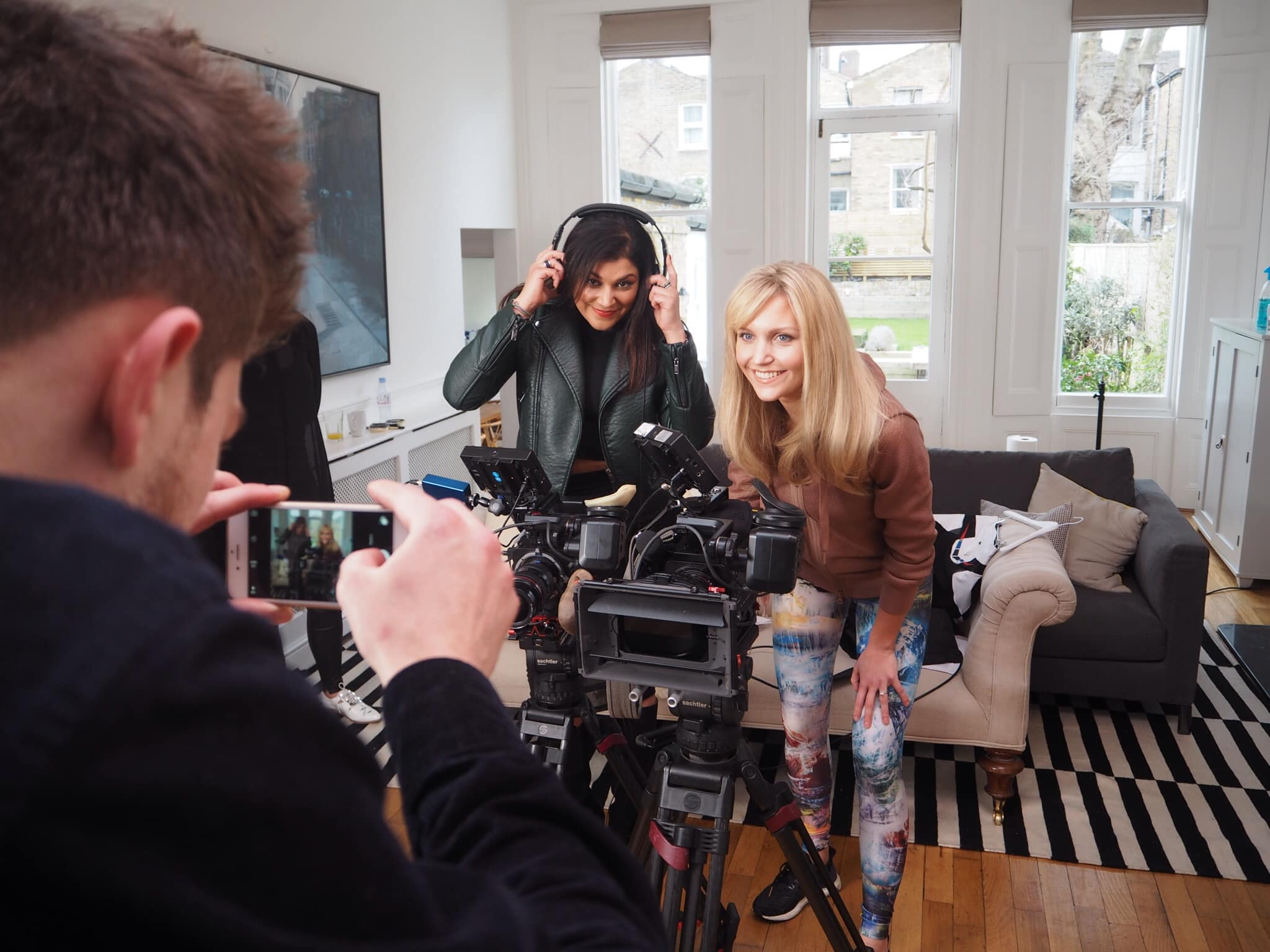 Above: Getting ready for my close up on the filming day and below: me and fellow brand ambassador Feya, go behind the camera.